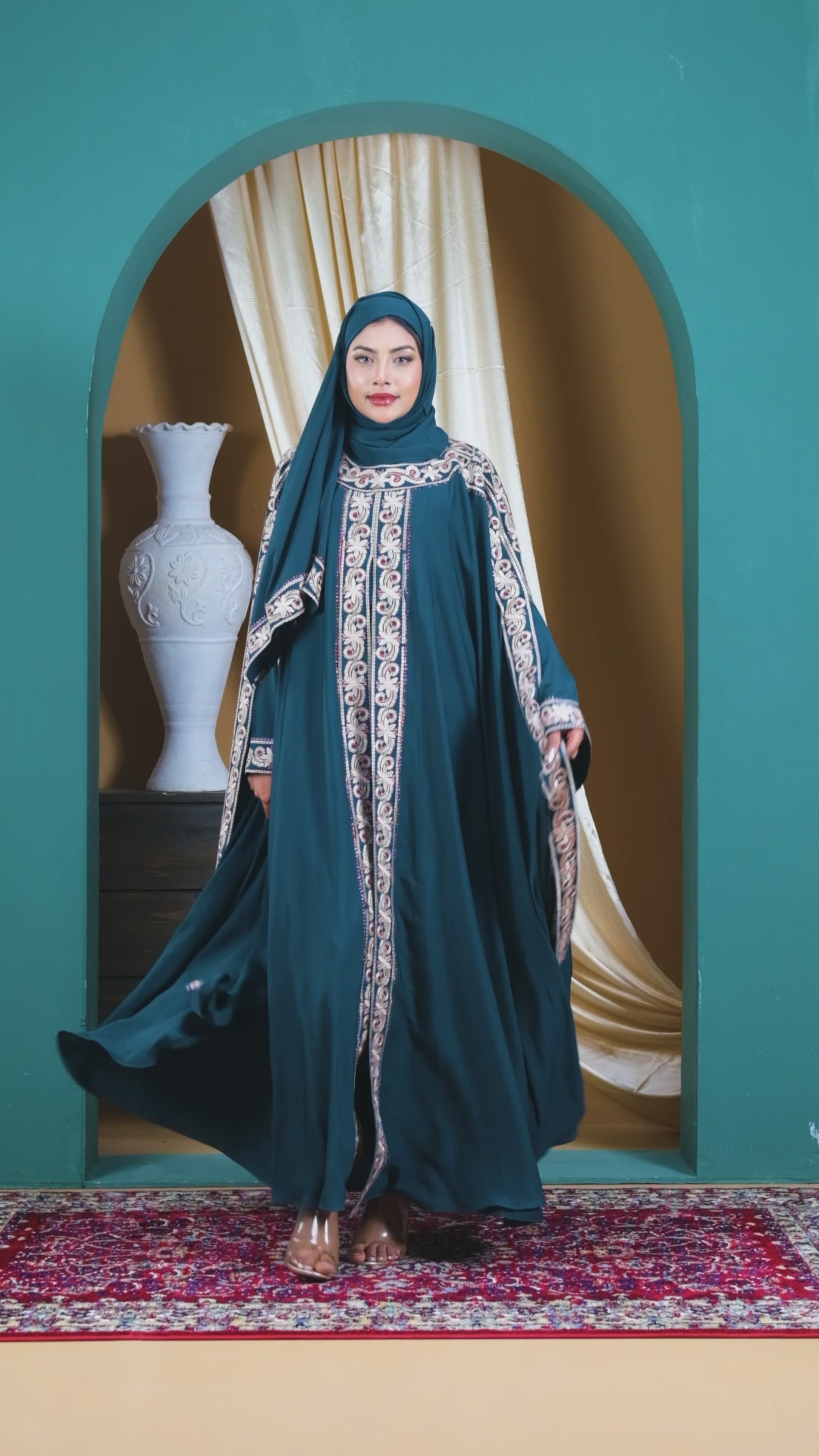Premium Jaffran Fabric Embroidery & Simple Stone Lace Work Abaya with Free Full Coverage Hijab